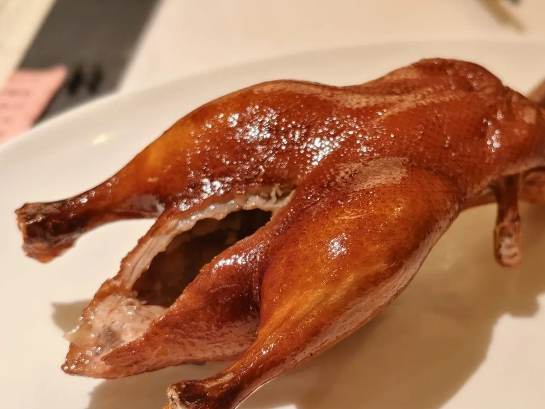 這名字真的貼切到極致!外皮薄得像玻璃,輕咬就是「咔嚓」的脆響,裡頭的鴿肉嫩得能爆出汁,濃郁的鴿香裹著鮮甜肉汁,連骨頭都滲著味,吃完忍不住想舔手指頭——不愧是利苑的經典硬菜。