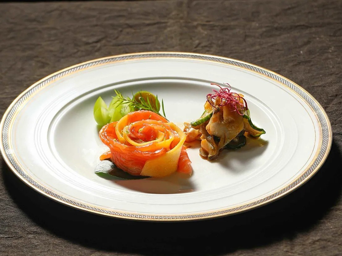 這道前菜堪稱開胃絕品,擺盤精緻如藝術。三文魚豐腴細嫩,海螺爽脆彈牙,搭配香芒的清甜,再淋上特調青檸汁,三種鮮味在口中交織,清爽不膩,瞬間喚醒味蕾。