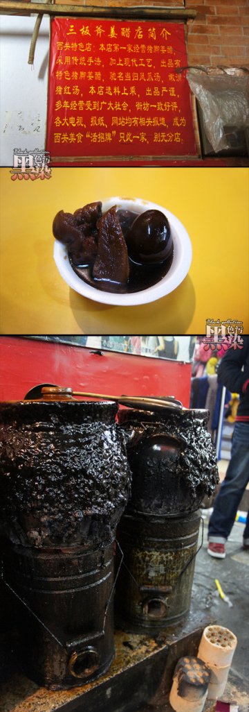 在上下九步行街这里有一间三板斧猪脚姜醋,生意非常的好,远远就闻到很香的猪脚姜味,每次经过都要来吃,醋很甜,非常好入口,姜是老姜,驱寒的作用特别好,辣味都出来了,所以姜吃起来就不是特别的辣,猪脚很淋,超级入味,鸡蛋整个都是姜醋的味道,硬硬的,有点嚼头,蛋黄特别好吃,想起来都垂涎欲滴啊。
