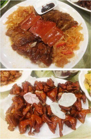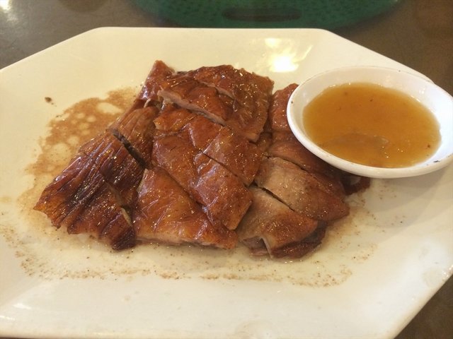 上渡食家的总店,看名字就知道是从上渡路起家的。环境整体还过得去,经过一些年已经有些旧,但作为街坊酒楼还算不错,服务中规中矩,没有太大亮点。主要是靠出品吸引客人。烧鹅,一直都还不错的出品,很多人必点。这次的出品卖相一般,皮有点收缩,但还是有点脆的,鹅不算肥,脂肪不是太厚,肉汁一般,味道还是不错的。陈皮骨,卖相也是一般,比较粗犷,排骨比较大块,但不是腩排,肉质一般,腌得比较入味,外脆里嫩,垫底的配菜用了薯仔,比较香。西芹炒百合,清淡的出品,健康,腰果没有炸得太过火。铁板竹肠,选材不错,竹肠新鲜爽脆,处理得也好,没有异味,味道稍微不够渗透,分量比较多,配菜颜色丰富。西兰花炒鲜鱿,卖相同样一般,炒得有点出水,鲜鱿处理还是不错的没有重碱味,保持鲜嫩口感和味道,西兰花青绿爽脆,味道适中。煎酿豆腐,同样是出水较多,火候问题,豆腐有豆香,不算太细腻,味道不过不失。豉汁尖椒,简单的东西,反而做得不错,尖椒微微煎过,但中间保持脆嫩,豉汁味道适中,香,做得不错。整体环境和服务中等,没有太大亮点,出品不过不失,卖相一般,胜在味道尚可,价格不贵,性价比高。查看更多