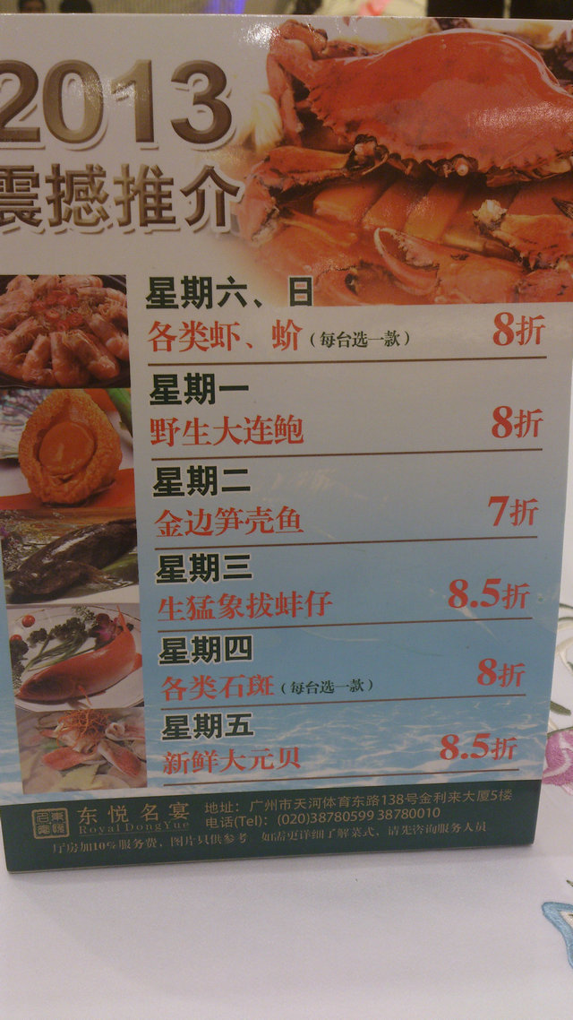 东悦海鲜酒家一家请客吃饭的好去处;所处的地段好交通方便!停车位多!环境舒适,服务热情!这里的水晶鸡:色泽黄金有光泽!皮嫩爽口,很鲜的鸡味,肉质嫩滑多汁!这里的银丝饼好吃!外皮酥松可口,粘些炼奶口感更棒!查看更多