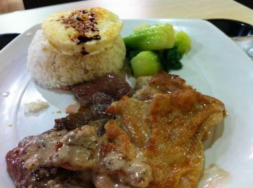 东西烧的价格不算贵的,而且分量一直都还是挺满意的,每次来肯定是要点炸豆腐的,我觉得比仙踪林做的稍微逊色一些,不过也可以接受,豆腐主要是不够脆,没有爆起来,不过味道比较重,即使不用加酱也是挺够味的。鸡扒饭也还可以,这个分量一定是够吃的,鸡扒的分量也不错,肉多且厚,鸡皮微微有点焦,有点脆脆的感觉,肉质略油腻,不过下饭蛮不错的。