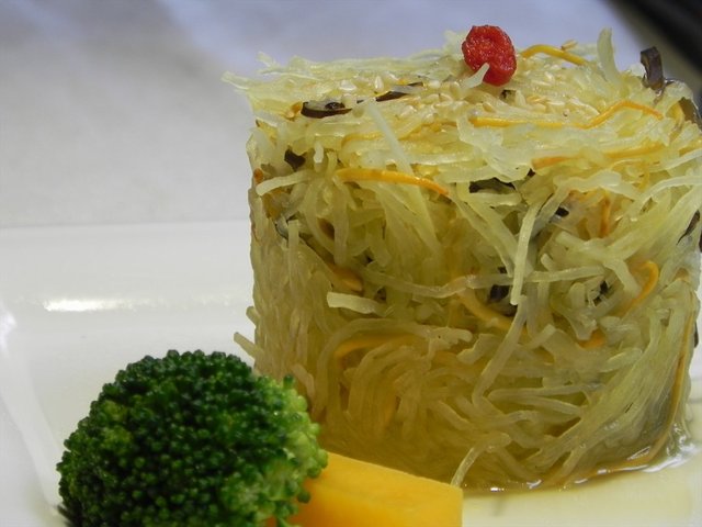 广州的万达广场已经开了两间,之前去白云区的万达,总觉得有点远,现在看来,另一个万达也不近,因为效果仍旧不方便。不说万达,说说万达旁边那间素食餐厅吧,已经不是第一次来了。这次来,品尝了一些比较简单的清淡的菜式。姜茸粉丝蒸鲜竹:咋一看,误以为这是豆腐,夹起来放在嘴里面的时候,才知道这是腐竹,还是没有经过多的处理的新鲜腐竹,豆味极其浓郁,表面类似蒸海鲜的做法,加入了姜末和粉丝,为普通的腐竹增添了一丝精彩!芥味银针:什么是银针,听起来有点奇怪,其实就是切成细丝的土豆丝,青瓜丝和一种豆芽。三者混合在一起,拌入芥末味道,还有一些秘制的酱汁,像一道简单的前菜,为你打开味蕾。…查看更多