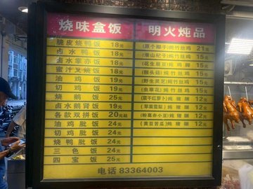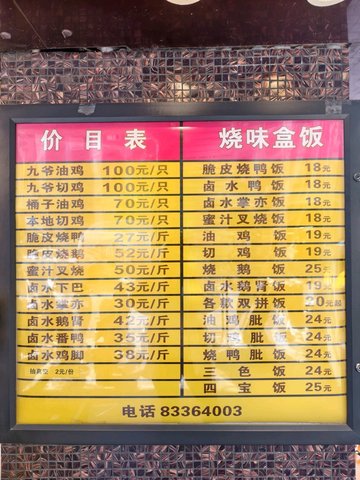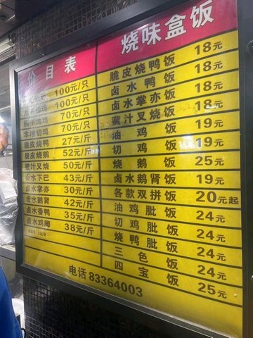 每次路过都人山人海的排队~这次终于觉得去试试了~~门面不大~挂满了烧腊~~黄色灯照起来特别吸引~~等了二十几分钟~终于轮到我了~看见价钱也不便宜啊~不知道是不是过节时候~感觉价钱挺贵的~~收银大妈态度一般般~~比较粗鲁~~砍鸡的大叔手起刀落~~也没问我留不留比~就把鸡比砍掉了~回去再加热一下鸡了~卖相还不错的~但是尝起来感觉名过其实~~百思不得其解为何人这么多~口感很韧~还塞牙~~鸡肉不嫩~很削~~感觉是饲料鸡~味道也一般般~~不值这价钱~