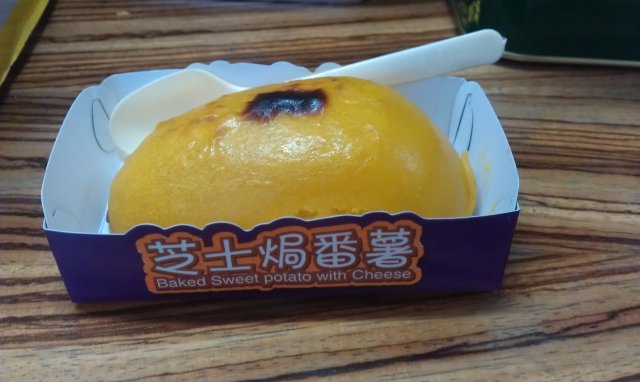 第一次来这里,找了很久,问了几个人才找到,店面前围着很多人,原来都是参加了活动来买一元一个套餐的,有芝士焗番薯和一杯饮料,我们也参加了这个活动。芝士焗番薯金黄金黄的,上面有一点点焦黑,看着有点像是葡挞,很香番薯味道,很甜,芝士味道少了点,没怎么感觉,要了一杯金桔柠檬冰茶,很清凉口感很好。好像最近没什么活动了。查看更多