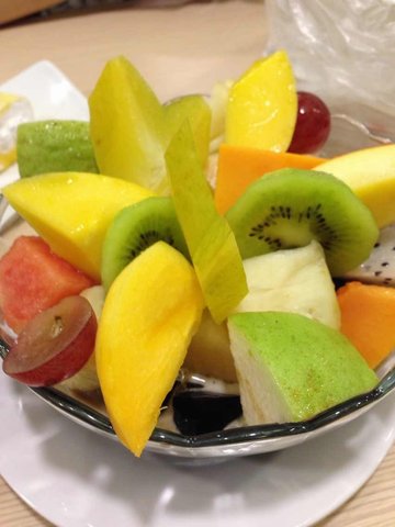 百搭果的甜品都系以水果为主,比较喜欢吃他的榴莲班戟同芒果班戟,薄薄的外皮包裹着奶油加水果,很好吃。至于其他的甜品感觉就一般般。这里除了水果甜品外还有饭,品种不算很多,味道也是较为普通。