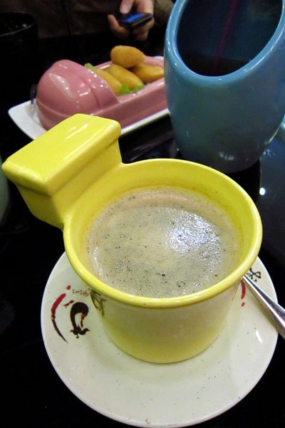 好玩的便所主题餐厅 funnyface等級42012-05-0821 瀏覽 關注 团购的一个套餐,69元,包括台式猪脚/无锡肉骨头/黑胡椒牛柳/五香鲁鸡腿(4选1)+夏威夷火山肉酱蛋包饭+黄金便便条/德州麻辣炸鸡块(2选1)+马桶五号+就是奶茶+皇家蜂蜜奶茶!我想选黑胡椒牛柳,服务生告诉我说没有,只好选了五香鲁鸡腿,炆得比较入味,还不错。奶茶偏甜偏淡,马桶五号的巧克力味太浓,有点苦。总体来说不过不失,来这里吃饭就是贪好玩,坐在马桶上,有尿兜喝奶茶,吃便便模样的雪糕,新奇有趣。…查看更多以上食評乃用戶個人意見 , 並不代表OpenRice之觀點。讚好分享好玩的便所主题餐厅 便所餐厅 https://s.openrice.com/KtbT0m0DNa200檢舉 張貼 評分4味道5環境4服務5衛生4抵食人均消費¥35