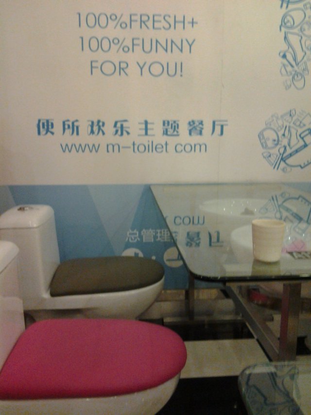 2B青年的便所主题餐厅 戴维斯的小窝等級42012-03-027 瀏覽 關注 周末,仍旧要加班加班加班!幸而有先见之明:做到头脑发热的时侯,一定要找点什么刺激一下大脑,SO~一早订了便所餐厅的位置,中午杀过去。 早前这家餐厅在中华广场只开了半天,就被人查封,感叹某些单位在某些特定的时侯,工作效率总是神速的! 重开的这家在天河地铁体育中心站D3出口的一家美食广场内。赶时间得速战速决!这家餐厅上菜的速度倒是挺快,我拿着小机逛了一圈回来不久就开始上东西。出品……大部分都比较SOSO(预左了),泡菜炒饭的泡菜味道最棒,饭也算OK就是所选的米还有改良空间。叫得主题餐厅,这里几乎所有餐具都跟便盘尿兜有所关联,都是粉色系的蓝、黄和粉红,色彩跳跃度蛮高,所以不需担心因为坐在马桶上对着便盘盛着的食物无法下咽。此外,餐厅还有许多WC主题的各式用品如纸巾套、抱枕等等出售,不过我最喜欢的倒是那个装黄金便条的粉红色便盘餐具,不知道售买否?! 由于团购,当天客人比较多,这样的情况下服务还算令人满意,主线是有一位GG在督场,不断教导服务MM客人怎样的情况应该怎样服务等等,应该是负责人或老板吧,呵呵。总体来说,这里属于休闲小憩类的,整体环境及设计很能让人自娱自乐一番。 PS:小机机之前借朋友用,当时忘了把参数给调整回来,SO~悲具了,PP仅作记录。 …查看更多+ 4以上食評乃用戶個人意見 , 並不代表OpenRice之觀點。1分享2B青年的便所主题餐厅 便所餐厅 https://s.openrice.com/KtbT0m0EHa200檢舉 hewei388 环境貌似很不错,不过我怎么感觉吃不下去的样子2012-03-05 回覆 張貼 評分3味道4環境3服務4衛生2抵食推介美食正正正正正正正正用餐日期2012-02-26
