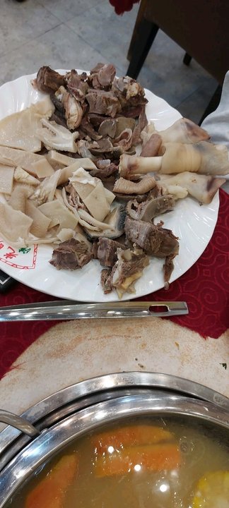 在广州,有一家吃羊非常出名的餐厅,叫光明清汤羊。这是家吃羊肉的老字号,每年都只开半年。又冷又湿的冬天,小伙伴还是抓紧时间,到光明清汤羊尝个鲜。尝鲜菜单包括:羊汤底、五羊开泰熟肉拼盘、鲜羊腰、自制手打鲜羊肉、羊腩、羊肉松煲仔饭等羊汤底:汤底采用广州老火汤的文化而创,以粤式清补凉:红枣、党参、杞子、桂圆等药材打成粉末,加入新鲜羊骨、甘蔗、马蹄等材料一起炖煮三四小时。汤体呈淡淡的乳白色,味鲜中带甜,不会太浓。五羊开泰熟肉拼盘:有中份和大份的,中份98元,大份138元。分别有羊展肉、羊肉、羊肚、羊靴、羊上杂。这些都是经过加工的,下煲后煮约10分钟便可以食用。个人比较喜欢羊肚,因为爽口弹牙,有嚼头。羊心:鲜羊腰:35元每份,在汤中略为涮一会就可以吃了,薄薄的一片,味道不算浓,口感爽嫩。自制手打鲜羊肉:羊肉丸中加入了马蹄,增加口感,爽中带滑。羊腩:一层皮一层脂肪一层肉,肥而不腻,羊油香味比较浓。配菜:羊肉松煲仔饭:羊肉加了芝燃,不太喜欢这个味道。觅食地址:广州市海珠区同庆路同聚坊20号公车路线:乘坐183路到南华中站下车,走到同庆路同聚坊20号,光明清汤羊。乘坐40路到广医一院(靖海路)总站下,走到同庆路同聚坊20号,光明清汤羊。地铁路线:乘地铁二号线到地铁海珠广场站D出入口下,走到同庆路同聚坊20号,光明清汤羊。分享完毕,欢迎关注本人微博:chansyc开心。查看更多