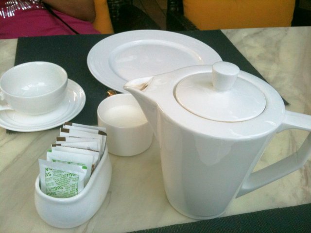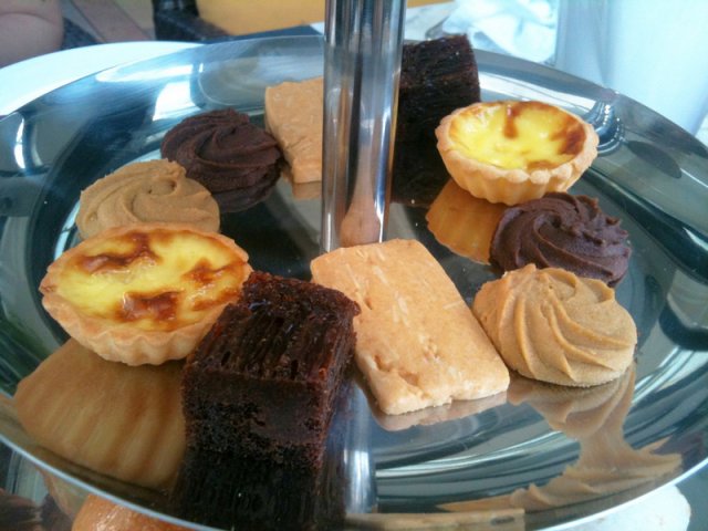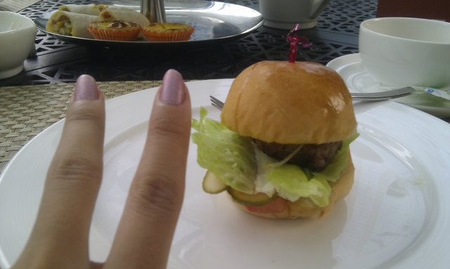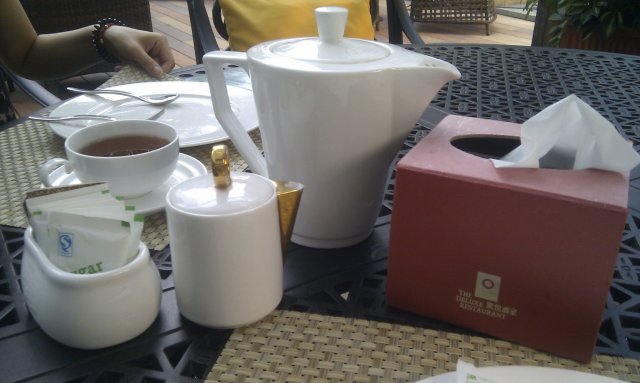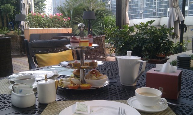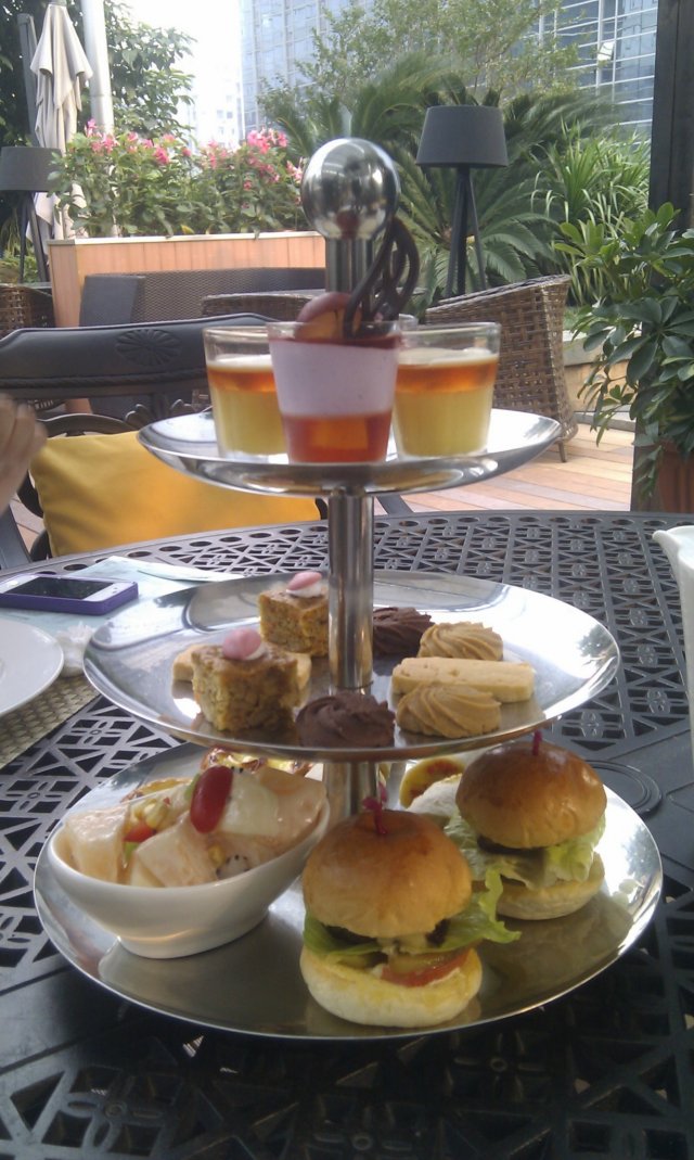 凯悦酒家 anglewen等級42012-10-1634 瀏覽 關注 这个周末约了朋友聊天,想了想记得这里的凯越下午茶有个露天的花园,环境好像还不错的!所以就约在了这里!大概3点钟到,发现只有两桌在喝茶,人很少!最适合朋友聊天!嘻嘻。。。虽然这里是中山大道旁边,但奇怪的是这里一点都不吵!也听不到车声!估计是因为花园旁边种了很多花草树木的原因吧,反正很舒服!一点都感觉不到自己在马路边!呵呵。。。环境挺漂亮的!室外的桌子很小资的感觉!可惜外面太晒了~~我们还是坐到遮阳篷里面好了。哈哈。。。看过去还有一些大台,旁边还有一个小小的流水瀑布,挺漂亮的!我们点了一个英式下午茶套餐!一盘三层的小点心加一壶英式红茶!有点像电影里面贵妇的生活!就让我当一回贵妇吧!哈哈。。。不过茶壶好像不够高档哦~~有点粗糙,照片里面看应该还好~~嘻嘻。。。旁边小小壶的是鲜奶,和糖,方便自己把红茶调成奶茶。试了一杯,还是觉得红茶比较好喝。嘻嘻。。。看看调成奶茶的成果!样子还挺不错的。好了,看完茶,来看看主角吧!点心来了!点心好精致好漂亮啊!都是小小的一个,吃起来不用担心形象被破坏!哈哈。。。难怪贵妇们如此钟爱这种下午茶~~~迷你汉堡包,有多迷你??对比一下旁边我的芊芊玉指。。。哈哈。。。还有迷你的蛋挞,大概只有男装表的表面那么大而已~~用的是曲奇皮,很好吃!好吧!享受完贵妇的下午茶。。。是时候重新变身灰姑娘~~~下楼去,贵妇的生活就结束了~~~等待着我的是星期一继续上班的苦闷~~~:p…查看更多+ 5以上食評乃用戶個人意見 , 並不代表OpenRice之觀點。讚好分享凯悦酒家 凯悦酒家 https://s.openrice.com/KtbT0m0h5W300檢舉 張貼 評分4味道5環境3服務4衛生2抵食推介美食正正正正正正正正正英式下午茶套餐,