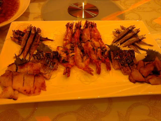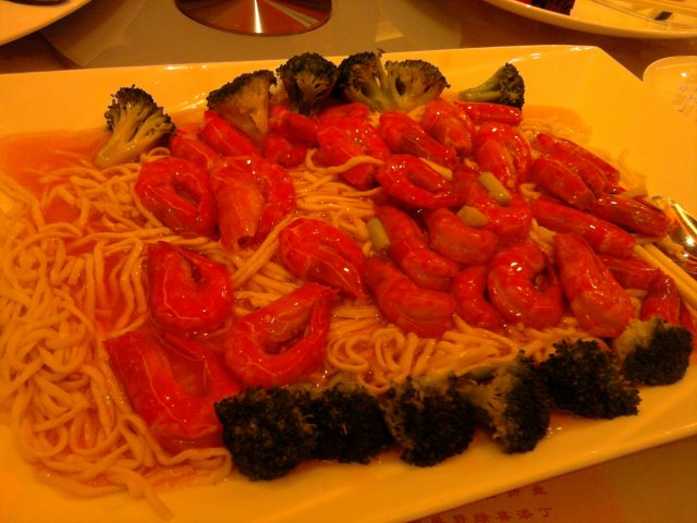 哇,都是挺有特色的菜色!竹节虾伊面的虾真多!