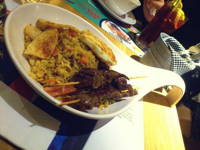 这间西餐厅位于地铁昌岗站附近,附近也都有地铁和多路公交车经过,交通十分便捷,很容易就能找到这里。店面不大,就餐氛围却十分优雅。装修非常具有西式餐厅的风格,感觉服务员十分和蔼可亲,很有亲和力,让人感觉十分舒服,这一点做得非常好。我点了一个菠萝焗饭,半个菠萝,感觉分量十足。在灯光的照射下呈现出夺目的金黄色,十分具有卖相。饭里除了菠萝粒之外还有葡萄粒和杏仁粒,葡萄粒十分淋甜,杏仁粒非常酥脆。跟饭一起吃味道酸酸甜甜的,非常开胃,非常好味。吃完以后感觉十分顶肚,齿颊留香,回味无穷。真是色香味俱全的一道菜,值得大家一试。…查看更多