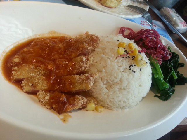 好久没来,现在因为价格便宜,所以到了饭点人超多。西冷牛扒的分量还行,七成熟出来也还算嫩,不过调味就真是一般了,汁比较咸,牛肉的香味不够。盐酥鸡,作为小吃,份量还行,调味也还行,偏咸一点,但要配饮料,所以问题不大,但是外层太硬了,里面的鸡肉也不嫩,不期望味道好到哪去,但硬、咸已经是硬伤了。焗猪扒饭还不错,用料足,很多芝士,吉列猪扒还比较香酥。查看更多