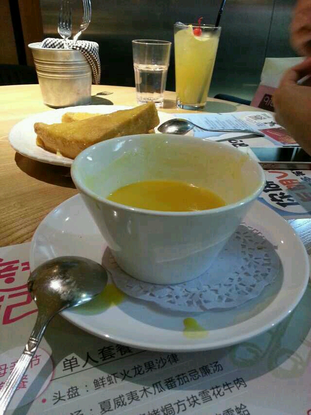 第一次去的时候 是朋友带去的,因为朋友在那里办了会员卡,而且还送了现金券位置很好找,就在路面,虽然门面较小但熟悉海珠区的孩子应该很了解就是以前的绿茵阁看了一下菜单,感觉单点还是挺贵的,还是点套餐较为划算朋友点了一份肉扒,我就点了一份肉酱意粉套餐,配了罗宋汤,另外加上咖喱角,芝士番薯等几份小吃肉扒还算挺不错,不会粘牙,而且很香很容易入口意粉分量很足,最后还没有吃完不过咖喱角就一般般了,没有很香的咖喱味还是最喜欢的是芝士番薯,很香很软,虽然很小的一份,但两个人食着,挺滋味的总体不错,会再来查看更多