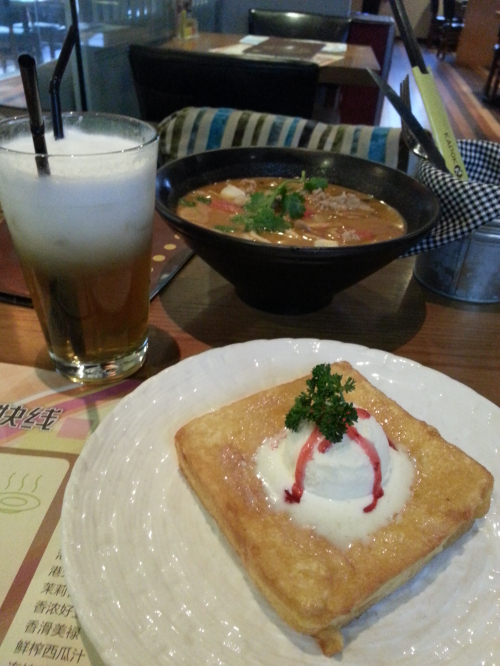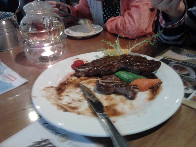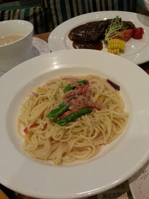 经常到了下午6点30分就开始要等位的了,其实我不怎么喜欢来这里,最讨厌等位等很久,而且又不是特别好吃,只能说这里的西餐价格很大众化,有会员卡的话还可以有折扣。这里营业到凌晨1点的。有免费WIFI。 最近一次来这里是七夕,也算是情人节吧,不是等了很久,因为坐三楼露天了,这里我超怒,一开始说上三楼,坐不是露天的位置,后来上到去就给了个露天的最后最角落头的位置,那都算了,最要紧是就在旁边有个水龙头围着一群蚊子不停的在飞,我叫服务员拿东西过来喷一下,她说只能点一下蚊香,那我说好吧。结果等了好久到我们吃完走了都没有来点蚊香!搞得我家小朋友被蚊子叮了好几口。 这天是特别七夕餐,168元。还另外送现金券,不过要下次消费才能用,而且要正价消费现金券的两倍能用。以下是这晚的菜式。菠菜忌廉汤:太难喝了,不会再喝第二次。大杂扒:还可以吧。甜品:整个餐,这个最好吃了。唉。因为有一大群蚊子飞来飞去,所以赶紧吃完走人。心情极不好的七夕!…查看更多