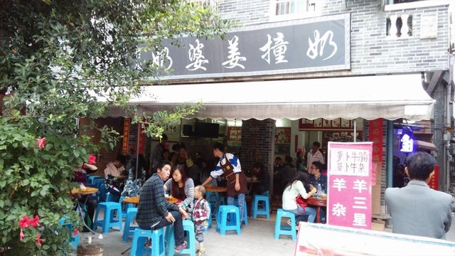 黄埔古港最出名的2家姜撞奶,一家是炖蛋皇,一家就是奶婆姜撞奶了。奶婆姜撞奶的地位很优越,正对着入来的路,十分显眼。招牌都叫奶婆姜撞奶了,来到这里当然要试一试姜撞奶了。现点现撞,很浓的姜味,辣辣的,冬天吃最适合不过了。这里还有牛三星、猪脚姜吃,种类比炖蛋皇要丰富。ps这里有厕所,还明文写着要消费才能如厕,哈哈,没消费的智能去公厕了。查看更多