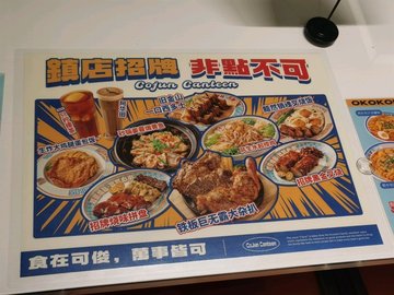 黯然銷魂叉燒飯 / 芝士肉醬豬扒焗飯 / 姜蔥雞扒撈丁 / 咖喱魚蛋 / 吉列豬扒牛角包 / 最佳男團檸檬茶