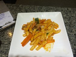 当时中午朋友带来这里吃的,位置比较偏僻走很多小路进来,挺多学生的,还要搭桌,不是室内环境,在楼底下的露天,有太阳刚好射进来的话有会一点点晒。去到就有餐具在桌上放着了,有免费wifi,点餐需要到前台。要了个招牌紫菜包饭10 元,朋友要了辛拉面15元。上菜速度不是很快,紫菜包饭有10块 随便吃吃就还可以,不是很好吃,紫菜卷包得挺漂亮,横切片也整齐,饭团倒是一般般,里面有些红萝卜啊 炒蛋啊 芝麻啊青瓜 什么的一起包着。辛拉面就像超市买的那种韩国方便面一包,我尝试了一下也挺辣的,没有什么配料,不怎么值,个人不是很喜欢。…Read More