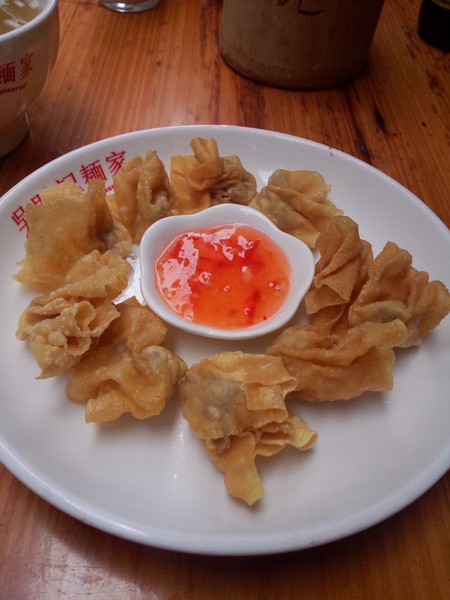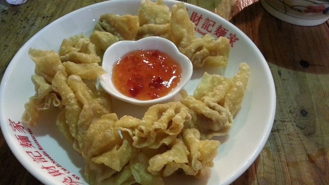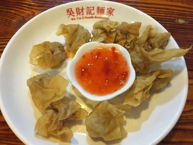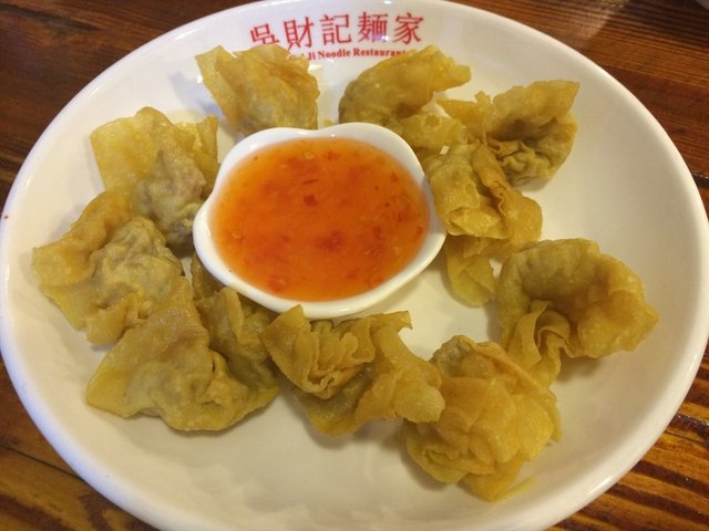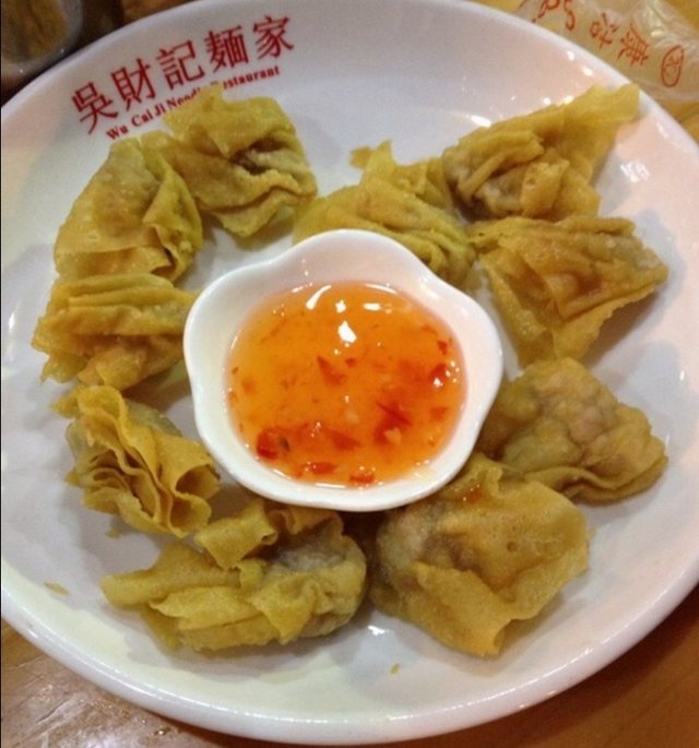 隱世雲吞博物館啊要找到吳財記真不容易啊!因為在大路甚至巷尾基本是看不到門牌,要走入去巷才有機會看到。小店在角落有一個好像排檔的鋪位,沒有什麼特別,但原來對面有兩個騎樓屋都是座位,左邊一家比較有特色,放了很多以前還是用擔挑賣雲吞麵時候用過的工具,真的好像博物館。叫了一個細蓉同炸雲吞,兩個都非常好細蓉有差不多6粒小雲吞,皮好薄好滑,肉餡不像現在的雲吞,是沒有蝦的,是傳統的做法,麵沒有鹼水味,湯底好清甜。炸雲吞不油膩,酸甜醬更是絕配。