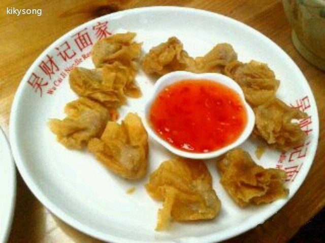 这家吴财记面家在大同路和隆里,一条很小的巷子,不熟悉西关的人还不容易找到。他家是一家老字号,经营了多年,是那种传统的粥粉面档。他家的环境简陋、狭窄,装修很一般,不过传统小吃云吞和面类却是非常出名的。很多人都是过来帮衬他家的云吞,像净云吞、云吞面、炸云吞等。他家云天的特点是云吞皮很薄,里面的馅很饱满,鲜虾馅则是大只弹牙;猪肉馅肥瘦搭配恰当。总之,到他家不吃云吞,真是走宝了。当然像猪手面、牛腩面也非常不错,也可以试试。…查看更多