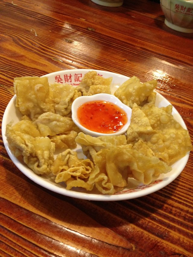 吴财记是广州的老字号了,古色古香的装修,就是太多人,要等好久好久的位,好多街坊都知道这家,有美食节目还采访过这家呢。炸云吞的馅味道做得很好,沾泰式酱汁一起吃味道太搭了,口感不会有一般炸物的油腻感,云吞面的汤非常鲜,面也很弹牙,而且没什么碱水味,挺香挺好吃的。查看更多