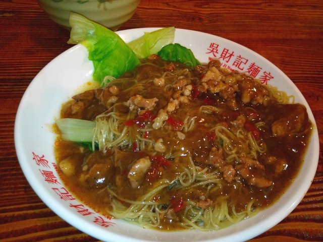 吴财记是广州的老字号了,好多街坊都知道这家。这次去到还见到有美食节目在采访这家呢。犀利的。来到这里肯定要吃云吞面了。不过吃云吞面吃的有点腻。这次选炸酱面。这里的碱水面还是挺好吃的,配上炸酱都还ok。另外还配一碗面汤。好像有点儿咸。其实我觉得最值得推荐的是这里的炸云吞炸的非常松脆,配上泰式辣酱,很醒胃。另外这里还有自制酸萝卜,这个让我想起来小的时候的面店都是配有酸萝卜的。很好吃。令人怀旧的一家面店。查看更多