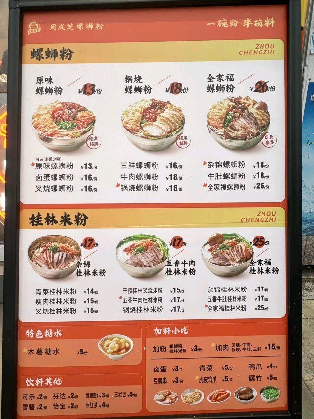 周成芝螺螄粉 (大涌路) (廣州) 網址: https://s.openrice.com/KtbS0m0B7ry00 地址: 廣州番禺區大石大涌路78號101號鋪 電話: +86 18027405238