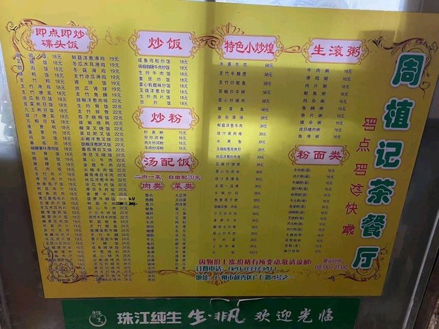 周植記茶餐廳 (廣仁路) (廣州) 網址: https://s.openrice.com/KtbS0m0n5PF00 地址: 廣州越秀區北京路廣仁路4-1號鋪 電話: +86 8337 3411
