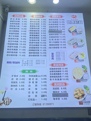牛肉腸粉 / 松花皮蛋粥 / 新鮮豬肝粥 / 游水鮮蝦腸 / 油條 / 冬菇魚片腸