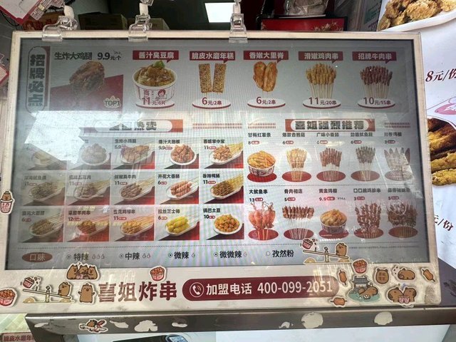 喜姐炸串 (星緣商業街) (廣州) 網址: https://s.openrice.com/KtbS0m0HyWxW0 地址: 廣州花都區新華鎮田美村南洋新莊一巷17號星緣商業街136號鋪 電話: +86 18027281940