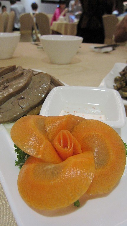 喜客貌似系五星级嘅酒店。额。真系好贵啊。。如果呢餐唔系免费嘅。我都唔会去呢度食啊。之前系微博中奖。。540嘅四人餐。哈哈。潮汕菜喔。不过我估应该都唔系好正宗。呢度D服务虽然系几好,不过D服务员有时都几呆呆的。唉唉。去攞奖果时就已经体验过一次。我以为有套餐券攞,跟住下次过来消费。点知距了解完我系来领奖之后呢,就话稳个咨客帮我处理。跟住就一直晾住我地系度。后尾实在顶唔顺,过去问,点解咁耐嘅。。对方先话,我地系度问厨房今晚可唔可以出菜。。顶。我都无话今晚食。囧。唉。。好啦。第二日同爸爸妈妈去食。坐落,登记个人资料之类。咁系咪自然要帮我地落单呢。无喔。我又以为已经出左单,落埋单。坐左半个钟。个服务员先问,你地落单未。顶。唔系登记确认完就落单嘅咩。晕死。距话客人无话落单,距地就唔会帮人地落单。晕。咁你都应该问声先吧。。好啦。讲翻D菜。个鹅肝好正。入口即溶。。好香啊!见菜单好似要98一份。真心贵啊!! 其他菜就比较一般了。炒薄壳,薄壳个头太小,味道也一般。潮汕小炒皇,呢个甜甜地,分量少~普宁炸豆腐,味道都OK嘅。窿左D,而且形状都唔似。哈哈。哦,仲有个鲨鱼皮羹。呢个都几好。好似食紧鱼翅咁。哈哈。苦瓜土猪肉,猪肉好香,哈哈。苦瓜够苦。最尾一人一碗鹅油饭。。饱晒啊!太贵喇。自费就真系吃不起啊。呢度环境又真系几好嘅。查看更多