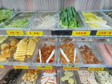 商蒿 / 空心菜 / 生菜 / 火腿腸 / 腐竹 / 面筋