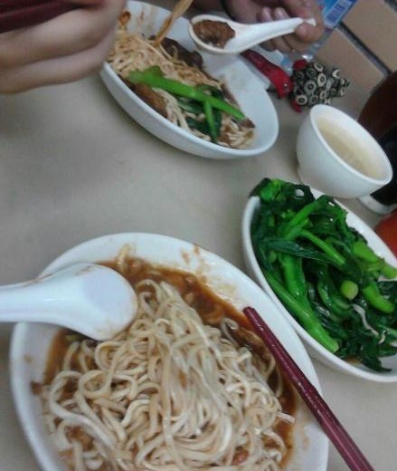 坚记面店很有名啊,虽然店面看着没有豪华装修感觉卫生条件也不怎么样但是叔叔阿姨们的热情马上让人觉得心情很好,很温馨这次两个人点了炸酱面,牛腩捞面还有青菜,通常这样就可以吃得很饱啦这个杂酱面真的很不错,酱料很有自己的味道,面又不会黏在一团牛腩捞面也好吃,牛腩挺多很入味,青菜就很鲜甜大棵,好好吃好饱好满足查看更多