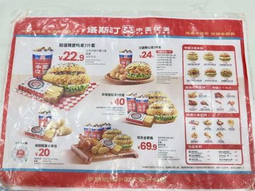 塔塔香雞腿 / 鹽酥雞米花 / 冰檸可樂 / 秘汁手扒雞 / 熱辣酥香炸雞架 / 脆燒雞蝦雙排中國漢堡