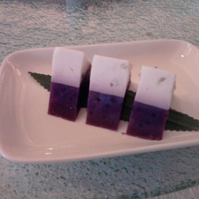 一间在广州算是最顶级的酒店之一的中餐厅,装修当然是富丽堂皇,无可挑剔,大型的水晶吊灯尽显气派,服务态度也是高水准的,出品味道也不错,要有好的享受,价钱当然不便了。蓝莓红豆瑞士卷,这个瑞士卷细细细块的,里面包着些红豆粒,软绵绵的,蛋糕表面铺了一小块芒果肉,再加一粒蓝莓,口感丰富,味道又够香,苹果酱叉烧酥,叉烧酥已经切开,表面睇上去焗得颜色有点深,但是很香,里面的叉烧馅挺瘦的,D酱改用苹果酱,味道酸酸甜甜的,比较好味。