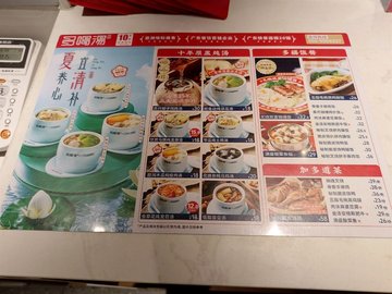多喝汤,在广州开了好几家分店了;这家的环境不错,位置也好多,地面很干净,服务周到。茶树菇鸡套餐26元,听服务员介绍说是新品,所以决定试试,套餐有一份青菜和米饭,还送了份海带。茶树菇份量很多,有点硬;鸡肉很淋,汤很清甜。茶树菇太多了,反而汤水很少。海带刚好一个人咯份量,上面有芝麻,看着红红的辣椒,就觉得好辣,吃入口,有点麻麻的感觉,脆香,确实挺辣的,不过味道很好,对于爱吃辣的朋友,别错过了,我可是一边喝汤,一边吃。米饭上面有玉米,饭很松软。青菜很鲜甜,不过份量很少。