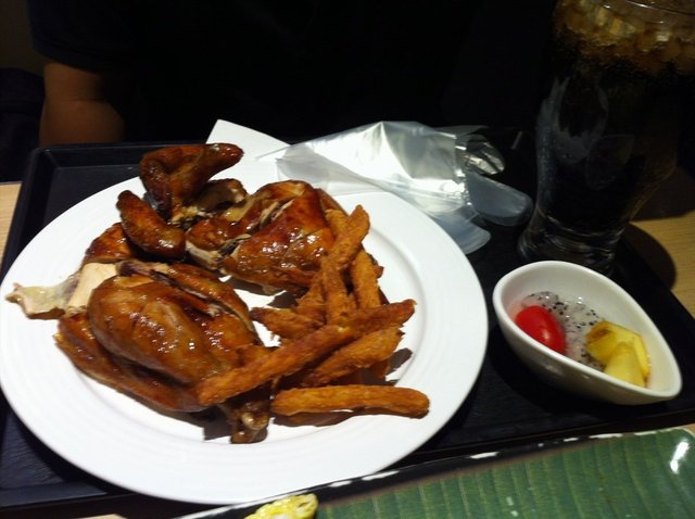 港式的连锁快餐店,定位上比较走高档路线,价钱偏贵,主要是附近上班的白领经常帮衬。平时比较喜欢点他家的一哥焗猪扒饭,调味上酸酸甜甜的挺不错。这次过去想换个口味,所以就点了海南鸡饭套餐,虽然跟正宗的海南鸡饭还是有些区别,不过味道上还是做得不错,鸡肉挺滑嫩的,鸡骨还带有一点血丝,鸡皮也做得爽脆,而且既香口得来也不会很油腻。总的来说性价比还算可以接受。查看更多