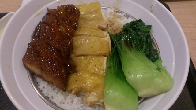 又吃最爱的烧腊饭,这次不吃五宝,吃叉烧拼白切鸡。分量很足,每样有5块,30多元。蜜汁叉烧刚烧好,咬下去好香肉味,甜甜的,还带些肥肉,好甘香,不会一味只是瘦肉,这样子肉会老。还有白切鸡,有姜葱点,不过不失,因为白切鸡处理真有点难,很容易就会过火,鸡胸肉等会韧。蜜汁叉烧真的很不错,饭很多,吃不完。配杯甜蜜蜜的红豆冰做饭后甜品就更加满足喇。查看更多