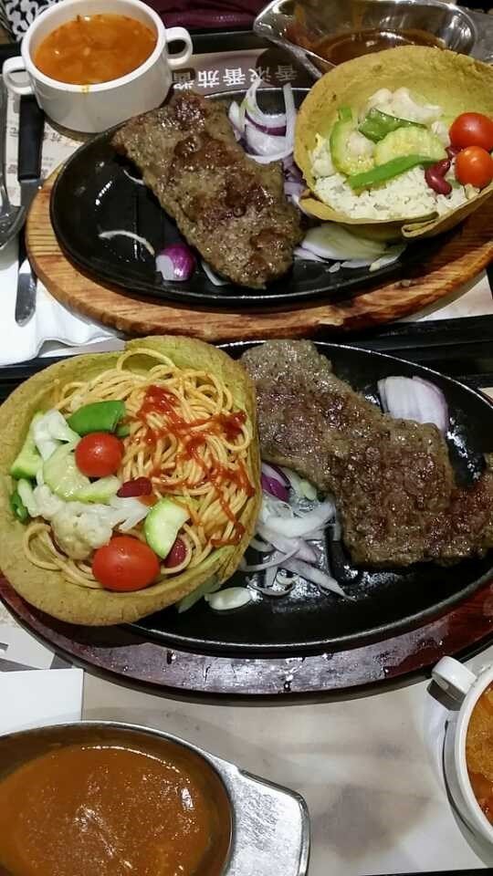 周末同朋友一起去大家乐锯牛扒,虽然话大家乐既野真系唔系好平,不过服务质量唔错,而且环境都好舒服下,唔会话好逼涩。一人一份牛扒,虽然睇落去件牛扒唔系好大件,不过都几厚下,有少少既黑椒味,煎得唔会话好熟,而且仲有少少嚼头,卖相都算可以。上面仲配佐少少既沙拉,有番茄仔啊,青瓜粒甘,仲有少少炸过既意粉甘,脆脆地甘,都几好味,仲有个咸咸地既酱汁,不过其实唔使加酱汁都已经好够味的了。查看更多