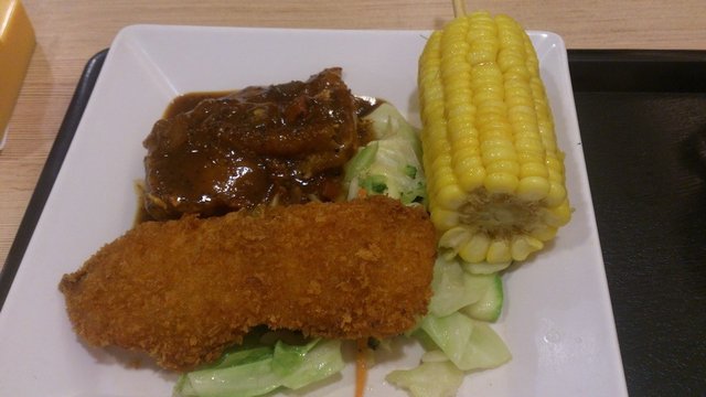 今天试试大家乐的新口味,终于不再吃四宝腊味啦。今天吃的是比较西式的餐,是类似鸳鸯扒的东西,要鱼扒+鸡扒,再加一个玉米棒。鱼扒蛮好吃,看上去好像很热气很干,但是里面的鱼肉超级嫩滑,而且腌制比较有味。鸡扒的烧汁看上去很多,但不会很咸。查看更多