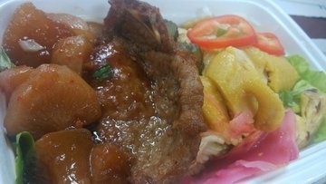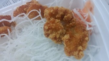 基本不提供送餐,因为点得多加了的士费和包装费才送的。鸡米花的出品真心一般,外面的粉层有点厚而且炸得也不酥,不点酱没法吃了。我们的鳗鱼饭也很受打击啊,打开只有一片鳗鱼,加上一块肉饼切成两半,这到底是肉饼饭还是鳗鱼饭呢?鳗鱼的调味还不错,带点甜,肉饼就很咸。
