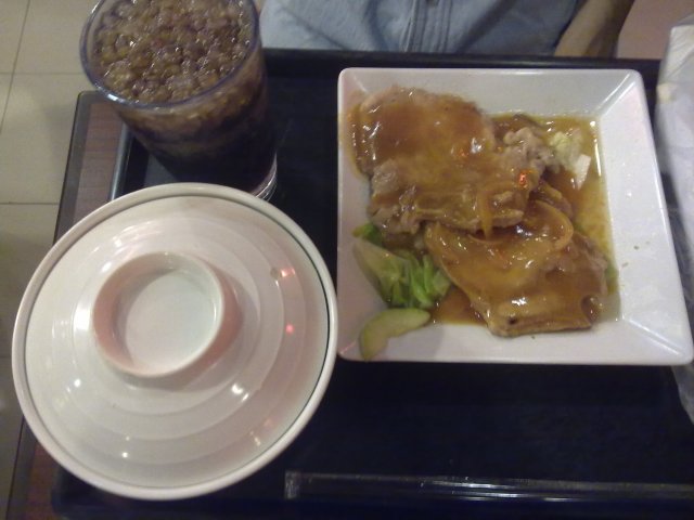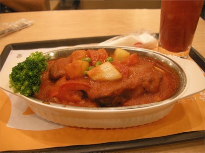 有一次周末的时候来天河城逛街,到了中午就来大家乐吃东西,找个位置不容易呀,还要排队买饭。洋葱猪扒饭套餐,一份饭,一杯饮料,饮料可以选择汤或者可乐。猪扒饭的卖相还不错,有两块猪扒,肉质口感一般般,烹制得比较入味,用酱汁拌饭吃还是很开胃的。中午的时候,一个人吃一份套餐也足够饱了。查看更多