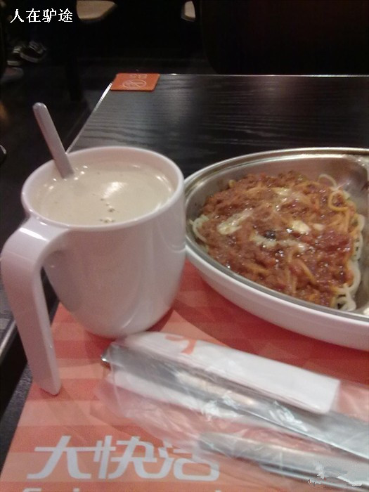 大快活餐厅是晚餐好选择!因为六点半之后有特价套餐~咖喱牛腩饭,配低糖冻绿茶~这杯饮料非常赞,不知道配方是什么,自己冲的茶叶吗?比市面上统一或者康师傅的茶饮料都好很多!也是为什么我喜欢这家店的原因~牛腩太少咖喱也没什么味道!铁锅肉酱鸡扒意粉~这个锅好小啊,而且下面空间不多,吃不饱……有WIFI,速度快~还可以买到便宜五毛钱到一块钱的跟餐五羊雪糕!查看更多