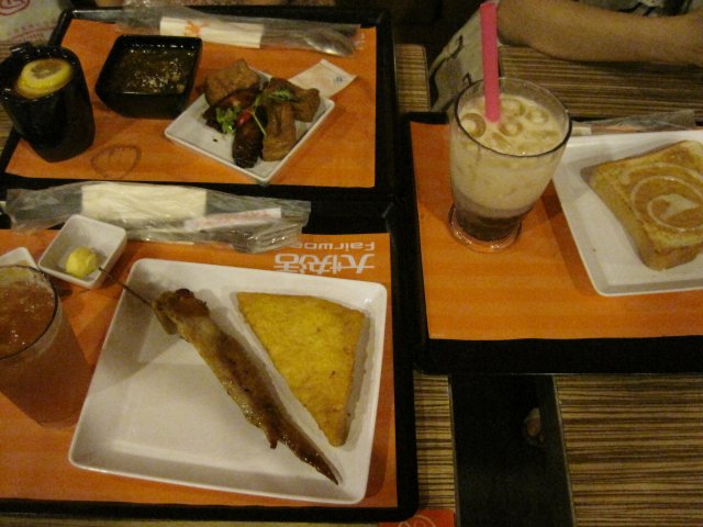 每次看到大快活,都让我想起阿里巴巴,可能因为都是橙色的缘故吧,很鲜艳很醒目。周末下午5点多,店里人不多,比较安静,店面挺大,为了充分利用空间,桌子摆得密密麻麻的。【葡汁焗汉宝扒饭+芝士焗肉酱意粉】 配饮料一杯 每次看到双拼的食物都挡不住诱惑,总是想一次性尝试多种口味,太贪心。意粉的味道不错,能吃出里面的孜然味,比较喜欢。焗汉宝扒饭,有淡淡的咖喱味。汉宝扒其实就是肉饼,切成了小块,一直不怎么喜欢肉饼,吃了觉得腻。饮料有很多品种可以选择,我要了咖啡。很大一杯,口感很滑,应该是加了很多伴侣在里面吧。查看更多