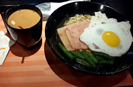 中午时分嚟到恒宝广场食翻个大快活快餐啦,香港制做D嘢都特别贵D。随便睇佐下好似冇咩啱我食,唔想食烧腊、唔想食咖喱,见到有公仔面就食佢啦,其实好贵24蚊先得那么的小小,配多杯热奶茶。环境算几大,服务员好迅速见到有票有即刻去收;面嘅份量唔使多讲,大家食过出前一丁面知道有几多嘢,一只太阳蛋,两件烟肉,几条龙牙豆做菜;至于奶茶有D寡口嘅感觉,总体还算可以,就系空调太过强劲了,坐得内顶受唔住。查看更多