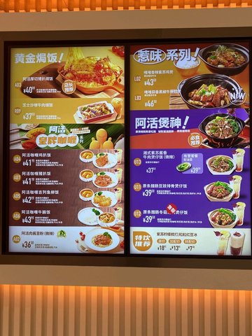 阿活香滑奶茶 / 蜜汁燒雞髀飯 / 阿活三重芝士焗豬排飯 / 足料碗仔翅 / 阿活皇牌咖喱 / 沙姜雞飯