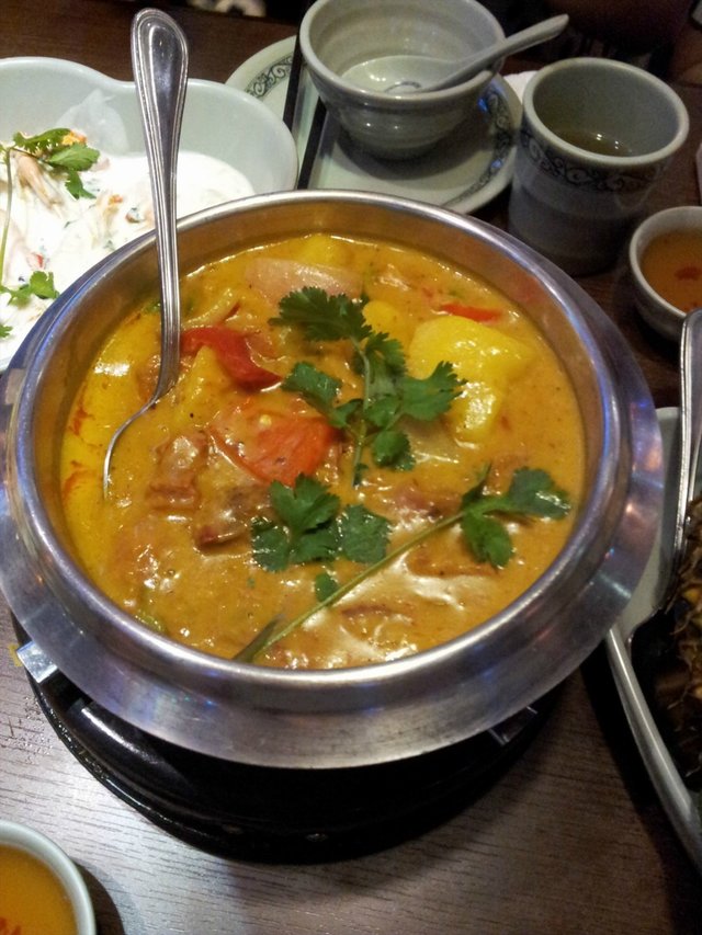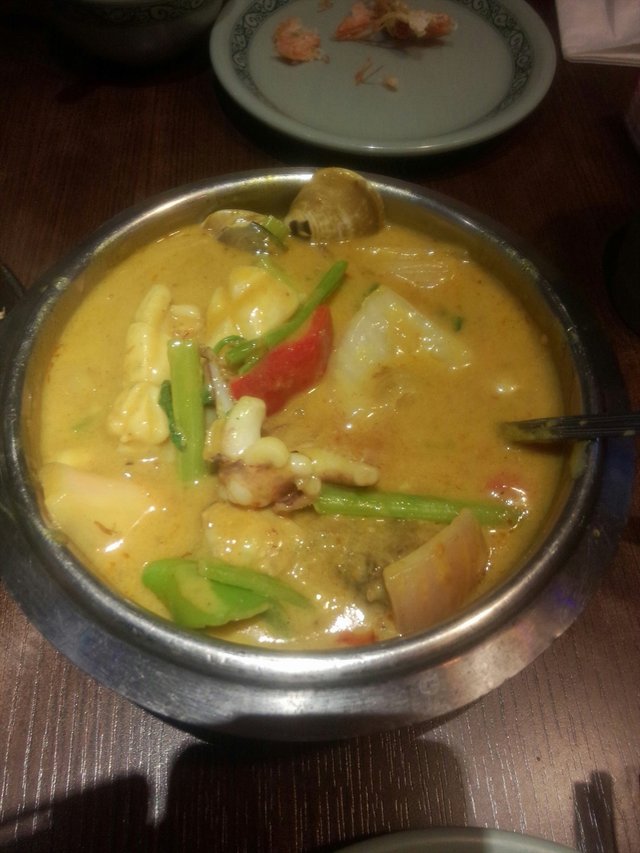 咖喱海鲜煲,咖喱味道好,海鲜以鱿鱼为主,虾不多,青口只有几只,但咖喱可以捞饭,很开胃。这个有点新鲜,猪肝牛腩红萝卜煲,汤底很香猪肝味,牛腩焖得够淋,红萝卜分量多。查看更多