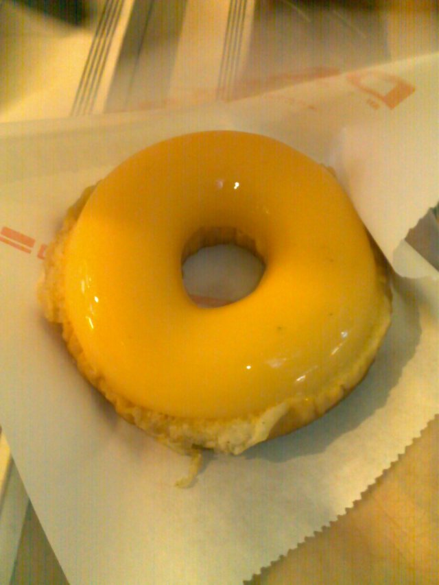 这家店就在正佳楼下,很小的一家店,但是总能吸引人过来买,因为卖相真的太好了,看了就想吃!买了一个巧克力的,还有一个芒果的,感觉芒果的好靓哦!甜甜圈上面涂上了一层厚厚的芒果巧克力的酱,金黄色的,咬了一口,地下的甜甜圈基本就是蛋糕的味道,软软的没有什么特殊,上面就可以尝出芒果的味道,不是很浓,上面的皮是脆的,口感还是不错的,巧克力的其实和芒果的都一样,只是上面的味道不同,但是觉得巧克力的更好吃些,因为味道够浓,而且酱汁也更多一些!查看更多