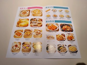 鮮蝦粥 / 嶺南金點灌湯包 / 洛神花茶 / 酥皮榴蓮薄餅 / 翡翠鮑魚鮮蝦粥 / 普寧豆醬炒麻葉