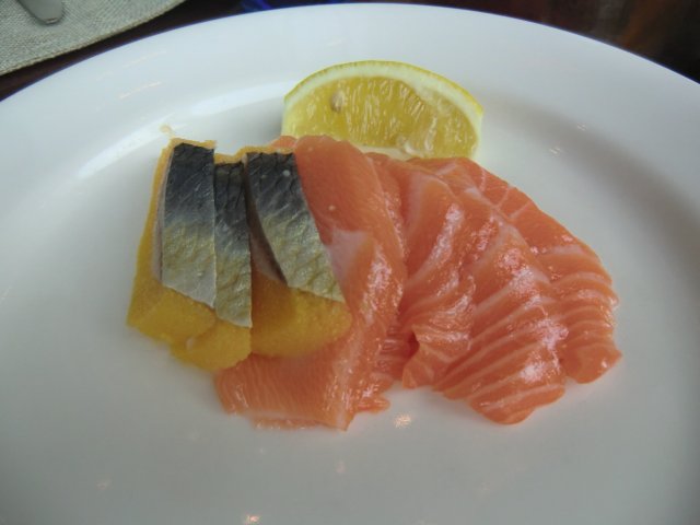 香辣虾,榴莲布丁,三文鱼刺身